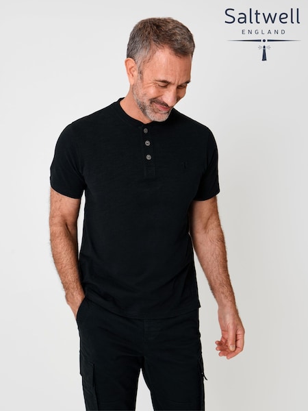 Saltwell Black Peached Cotton Grandad T-Shirt