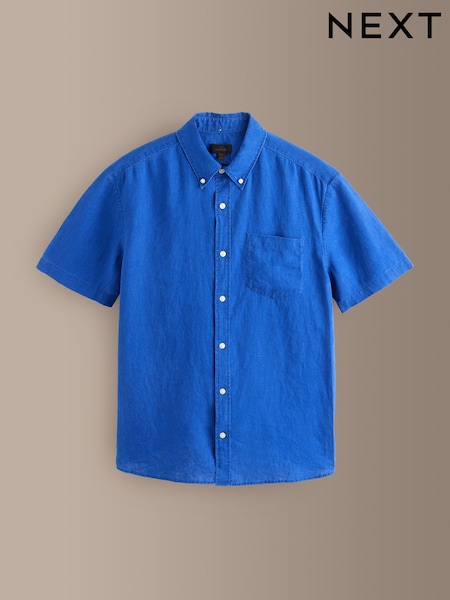 Joules Light Blue Linen Blend Short Sleeve Shirt