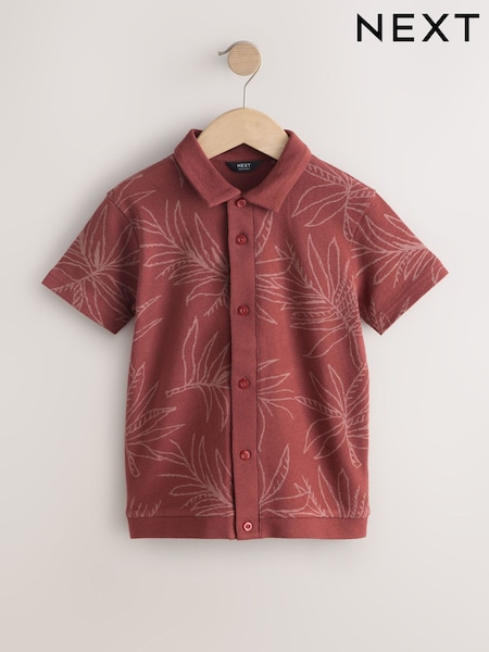 Rust Red Button Through Short Sleeve Jersey Shirt (3-16yrs)