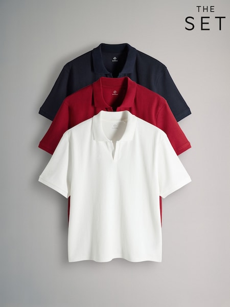 The Set Ribbed Heavy Cotton Trophy Neck T-Shirts 3 Pack Red/Navy