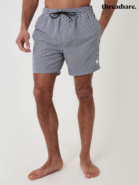 Threadbare Black Geo Print Contast Piping Quick Dry Swim Shorts
