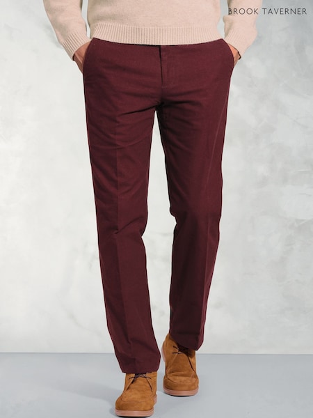 Brook Taverner Red Regular Fit Cotton Moleskin Trousers