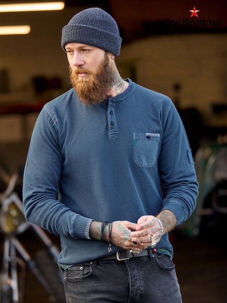Joe Browns Blue Wonderful Waffle Customised Henley T-Shirt