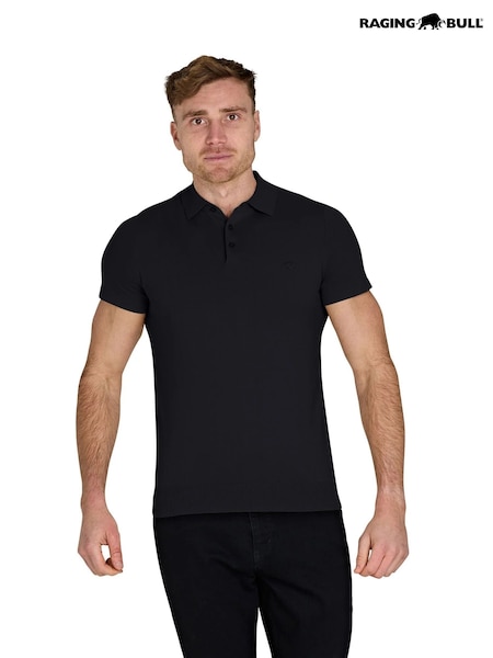 Raging Bull Black Short Sleeve Knitted Polo Shirt