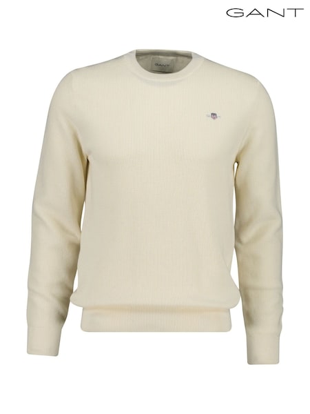 GANT Cream Micro Waffle Texture Cotton Crew Neck Knit Jumper