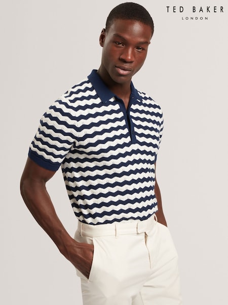 Ted Baker Blue Short Sleeve Stitch Detail Polo Shirt