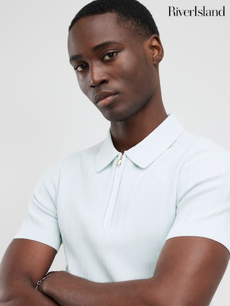 River Island Blue Muscle Fit Rib Polo Shirt