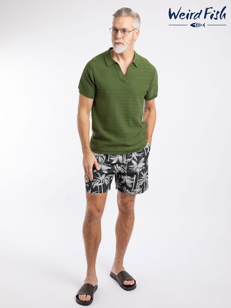 Weird Fish Green Tyne Trophy Neck Knitted Polo Shirt
