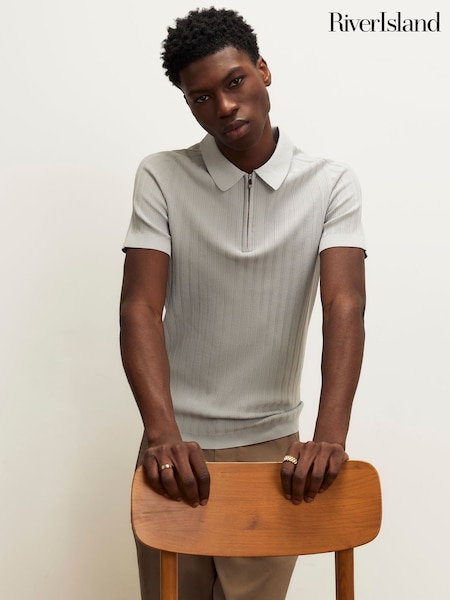 Brook Taverner Grey Textured Cotton Knitted Polo Shirt