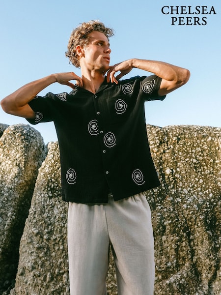 Chelsea Peers Black Cotton Embroidered Short Sleeve Shirt