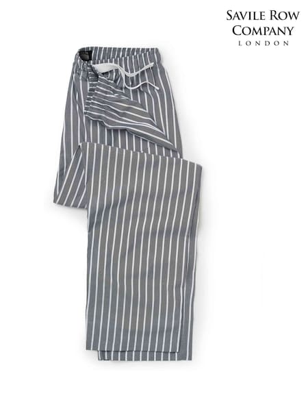 Savile Row Company Blue/Navy Striped Cotton Pyjama Bottoms