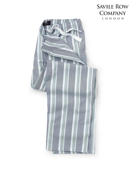 Savile Row Company Blue/Green Striped Cotton Pyjama Bottoms