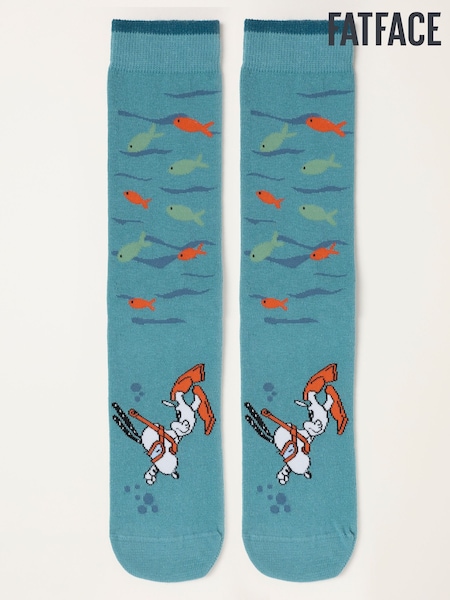FatFace Teal Blue Snoopy Snorkeling Socks