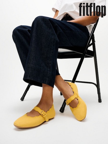 FitFlop Yellow Delicato Wave-Edge Canvas Mary Janes Shoes