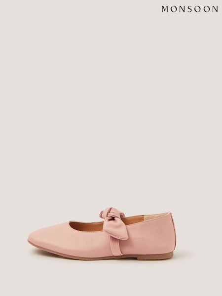 Monsoon Pink Bow Strap Leather Ballet Flats Shoes