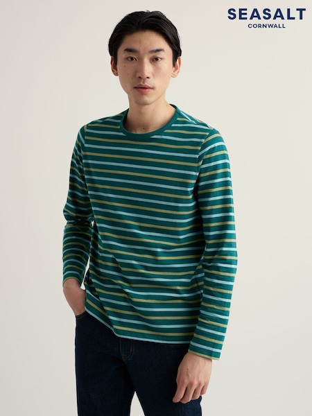 Seasalt Cornwall Green/Blue Sailor Shirt With Crew Neck