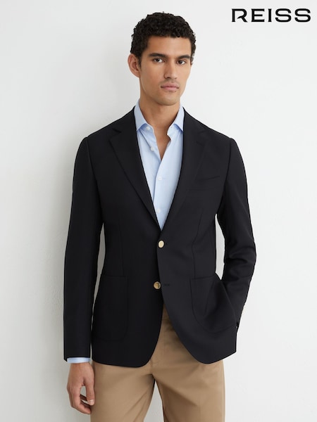 Reiss Navy Captain Sb Hopsack Single-Breasted Classic-Fit Blazer with Wool