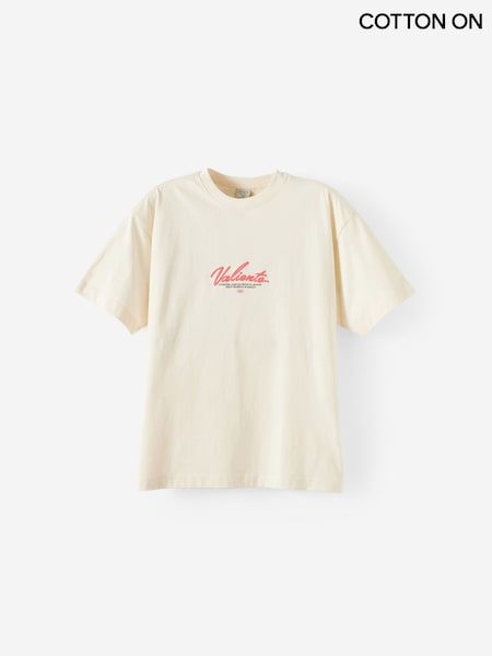 Cotton On Cream Box Fit Text T-Shirt