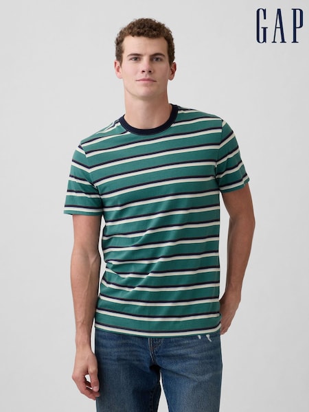 Gap Green Everyday Soft Stripe Crew Neck T-Shirt
