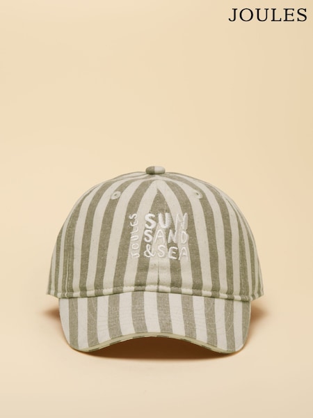 Joules Kids' Daley Green Ecru Stripe Baseball Cap