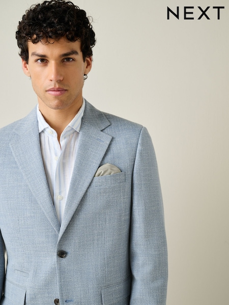 Bright Blue Regular Fit Textured Linen Blend Blazer