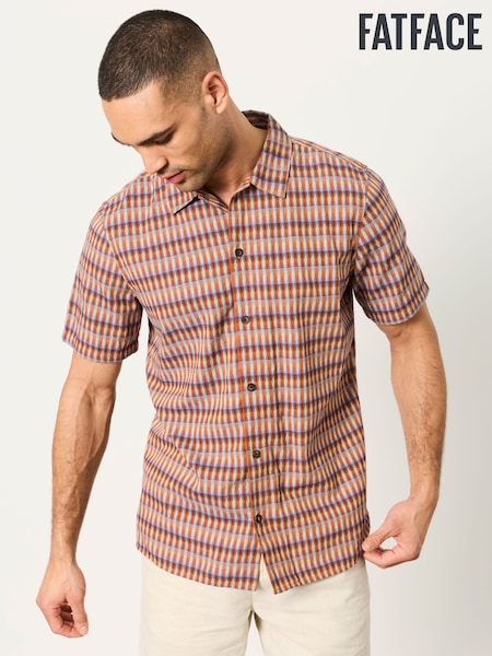 FatFace Rust Brown Long Sleeve Dogtooth Shirt