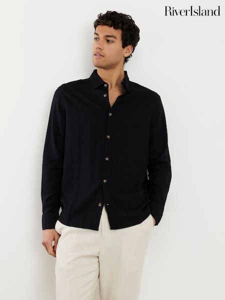 River Island Black Regular Fit Linen Blend Shirt