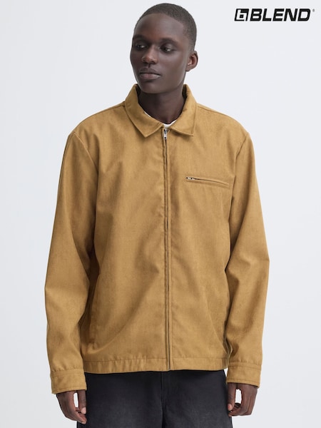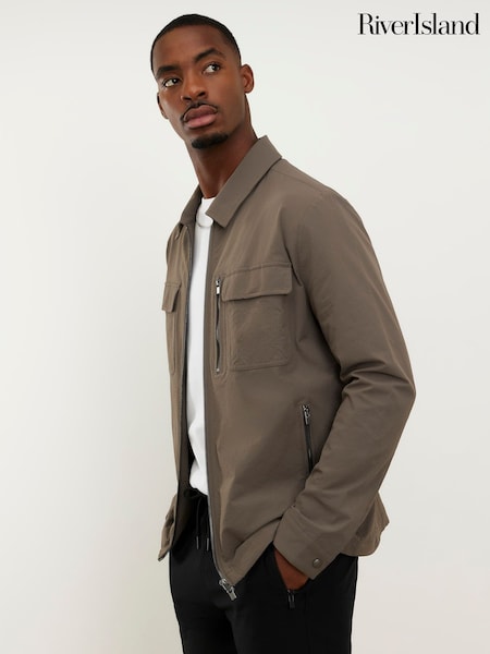 Threadbare Brown Showerproof Patch Pocket Zip Up Collared Jacket