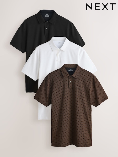 Black Gold Geo Printed Short Sleeve Jersey Polo Shirts 3 Pack