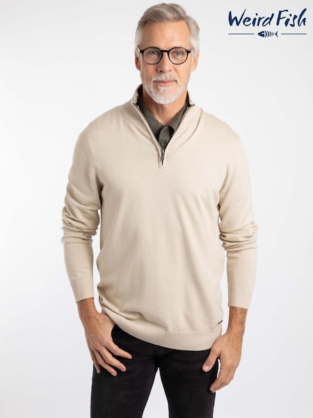 Weird Fish Cream Blaine Fine Knit 1/4 Zip Jumper