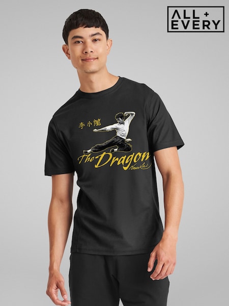 All + Every Black Bruce Lee The Dragon Flying Kick T-Shirt