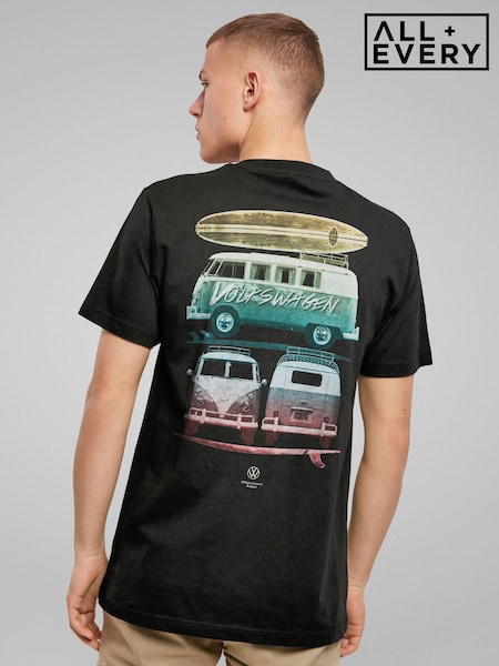 All + Every Black Volkswagen Type 2 T1 Surfer's Campervan T-Shirt