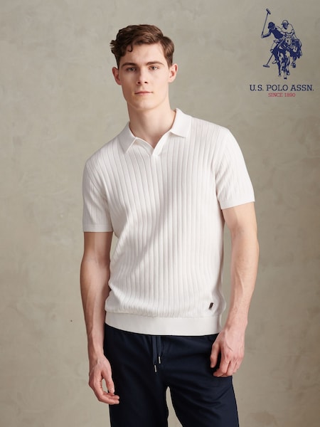 U.S. Polo Assn. White Revere Collar Vertical Knit Polo Shirt