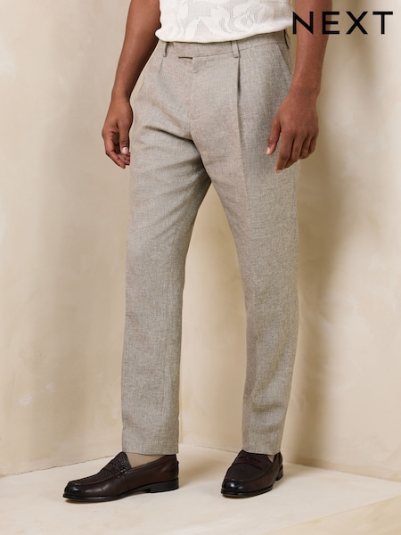 Neutral Beige Linen Blend Suit Trousers (3-16yrs)