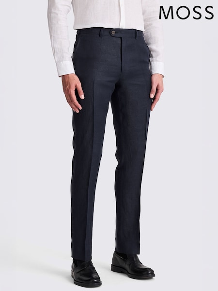 MOSS Navy Italian Tailored Fit Twill Linen Suit Trousers