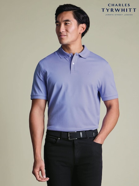 Charles Tyrwhitt Purple Short Sleeve Cotton Stretch Pique Polo Shirt