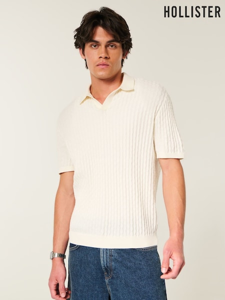 MAUVAIS White Blanca Pointelle Open Collar Jumper