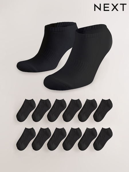 Black Cushioned Sports Trainer Socks 12 Pack