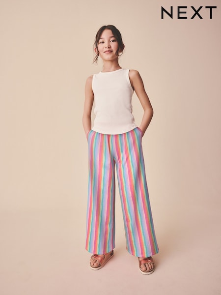 Pink/Blue Stripe Wide Leg Textured Trousers (3-16yrs)