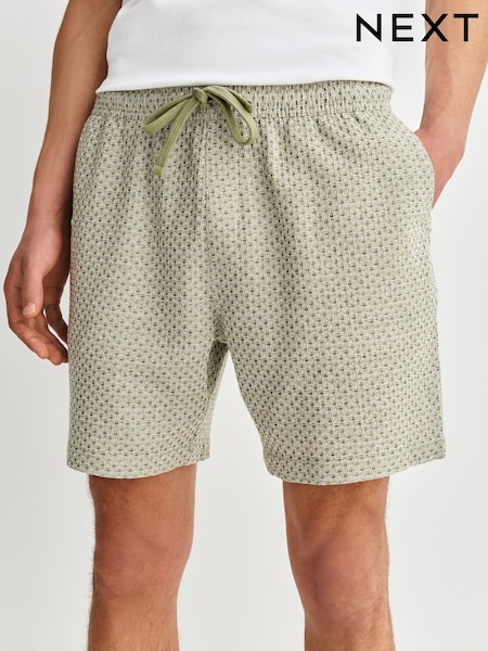 Sage Green Waffle Texture Drawstring Waist Shorts
