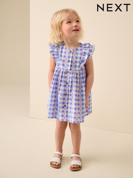 Blue Check Frill Sleeve Dress (3mths-8yrs)