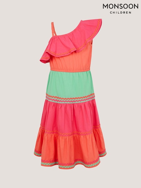 Monsoon Pink One Shoulder Colourblock Dress