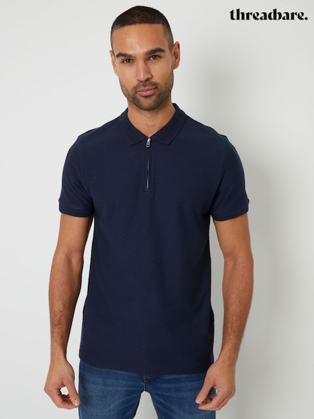 Threadbare Navy Textured Quarter Zip Polo Shirt