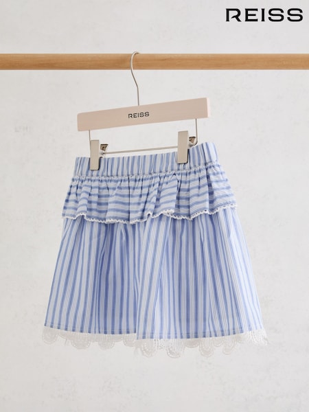 Reiss Blue/White Julie Cotton Striped Lace-Trim Skirt