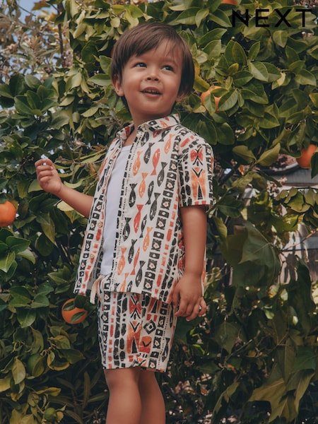 Ecru All Over Print Fish Short Sleeve AOP Shirt and Shorts Set (3mths-10yrs)