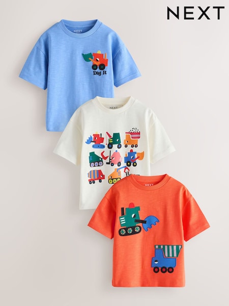Multi Digger Short Sleeve Appliqué T-Shirts 3 Pack (3mths-7yrs)
