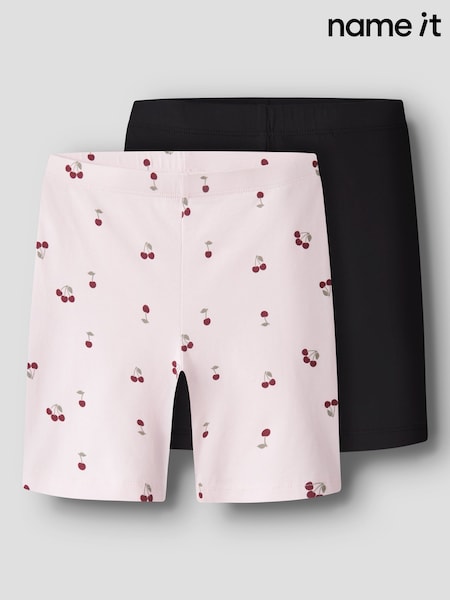 NAME IT Black/Pink Cherry Print Cycling Shorts 2 Pack
