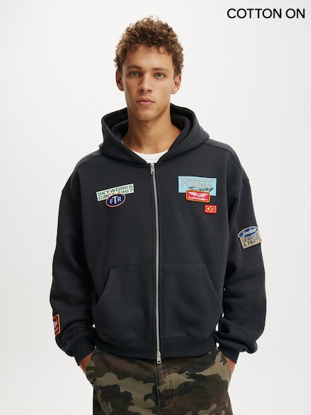 Cotton On Black Cropped Zip Up Graphic Hoodie