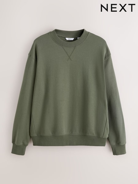 Khaki Green Cotton Rich Lightweight Jersey Crew Sweatshirt