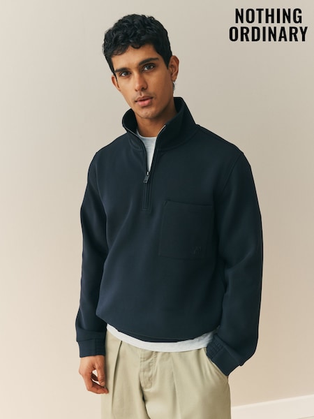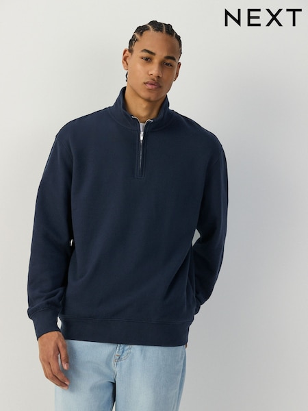 Navy Blue Cotton Rich Lightweight Jersey Quarter Zip Sweatshirt